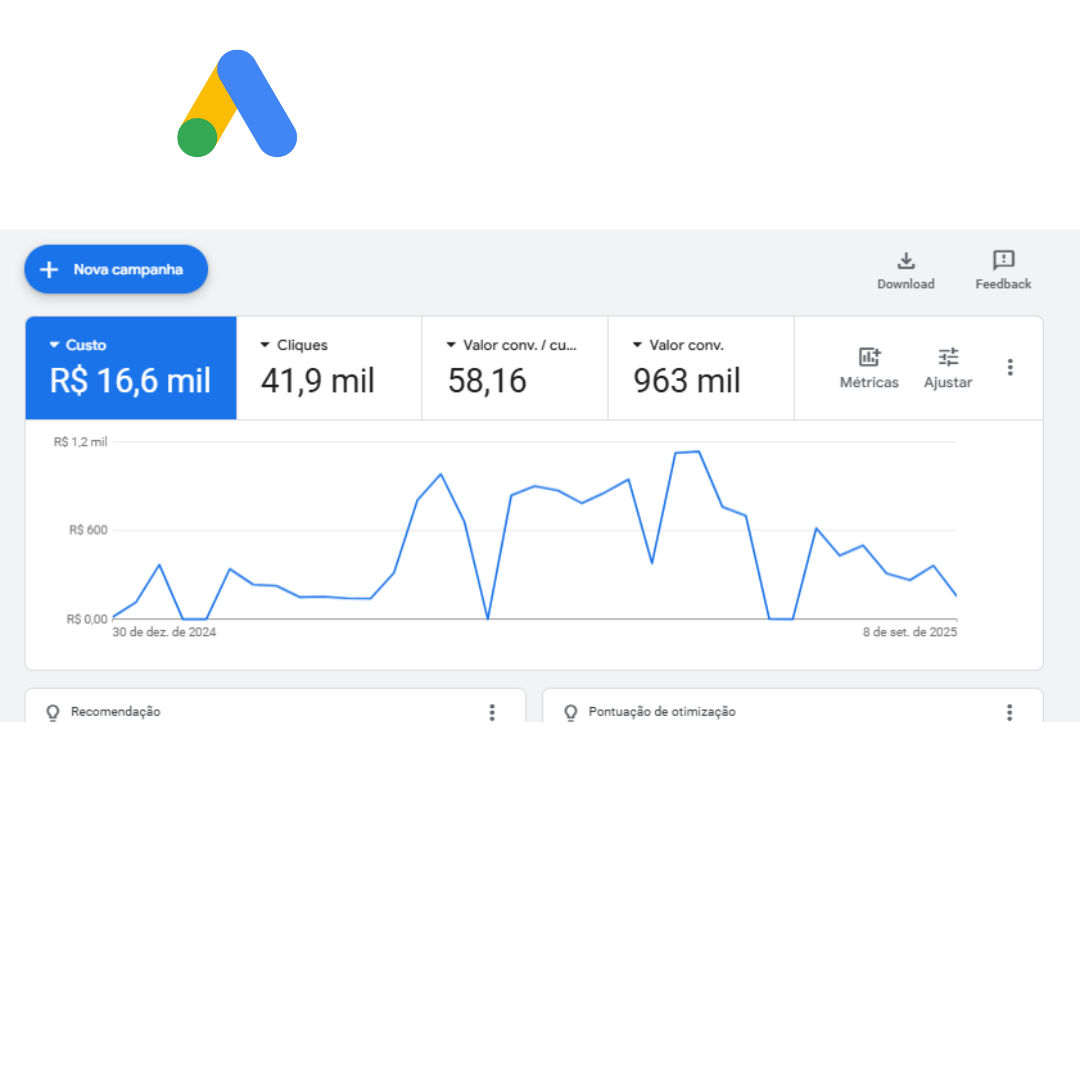 Gestão de tráfego pago (Google & Meta Ads) focada em análise de dados e otimização do seu investimento.